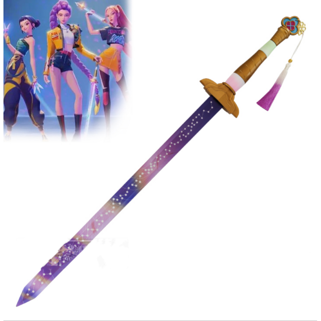 Het zwaard is voorzien van een metalen, ongeslepen blade en is daardoor vooral bedoeld als decoratief zwaard of cosplay-prop, niet als functioneel wapen. De strakke vormen, KPop/Demon Hunter-stijl en moderne look maken dit zwaard perfect voor fans van anime, KPop, gaming en fantasy.