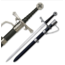 • Totaallengte: ± 36½ inch (≈ 93 cm) inclusief handvat  • Handvat: Zwart samengesteld met metaalbeslag in antieke zilverkleur • Schede: Zwart afgewerkt met bijpassend metalen beslag • Materiaal lemmet: Roestvrij staal • Gebruik: Decoratie, cosp Lees meer.