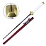 Deze ornamentale katana is geïnspireerd door Naruto Uzumaki’s katana uit de anime-serie Boruto. Het zwaard is uitgevoerd met een koolstofstalen lemmet, een houten schede en tsuka (handvat) en een metalen tsuba, wat zorgt voor een authentieke en stijlvolle uitstraling.